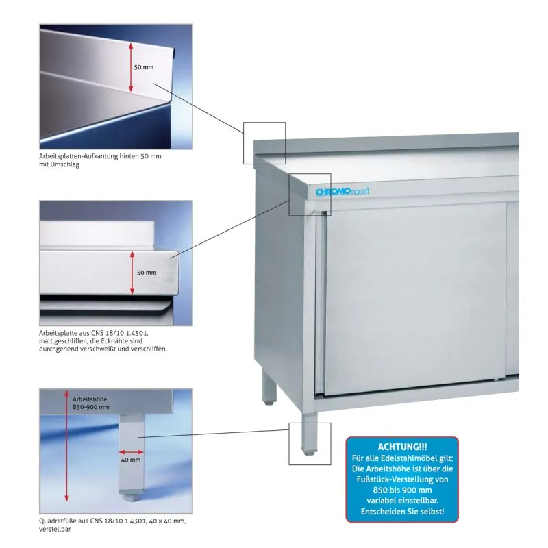 Chromonorm Edelstahl Arbeitstisch TZ07XXUS3R0