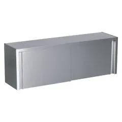 Ausführung CNS 18/10, 4-seitig geschlossen, mit einem höhenverstellbarem Zwischenfach und frontseits Schiebetüren mit einer Antidröhnmatte schallgedämmt.