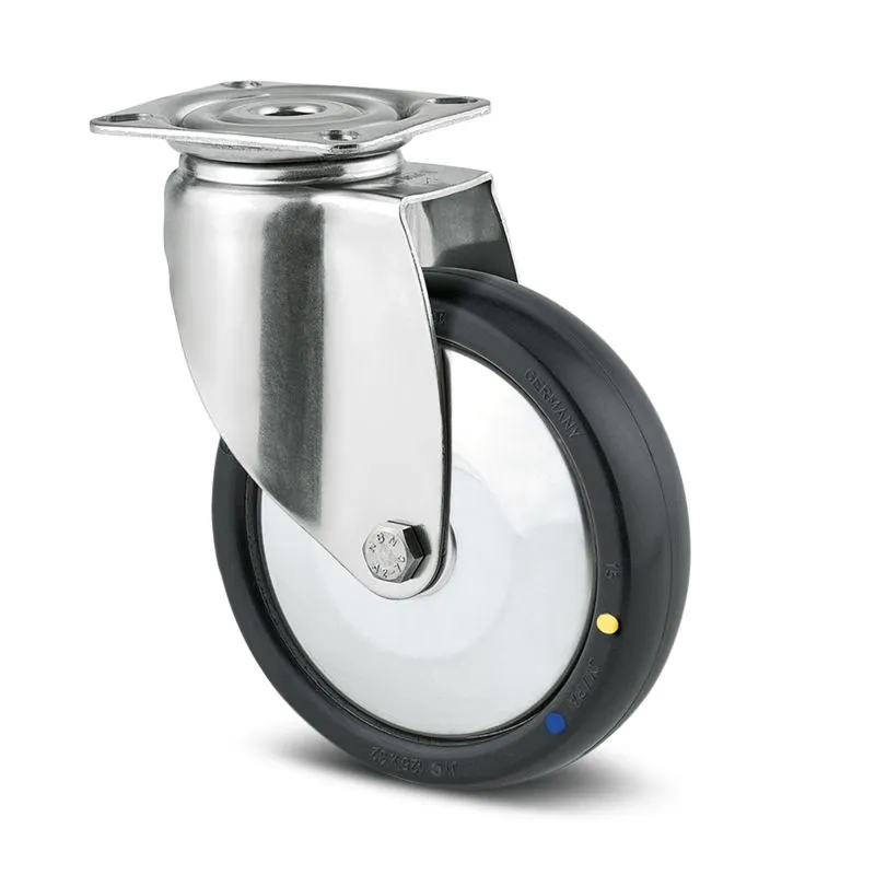 Rolle mit Anschraubplatte, ohne Bremse,Kugellager, Edelstahlgehäuse, Antistatischund Sterilisationstauglich