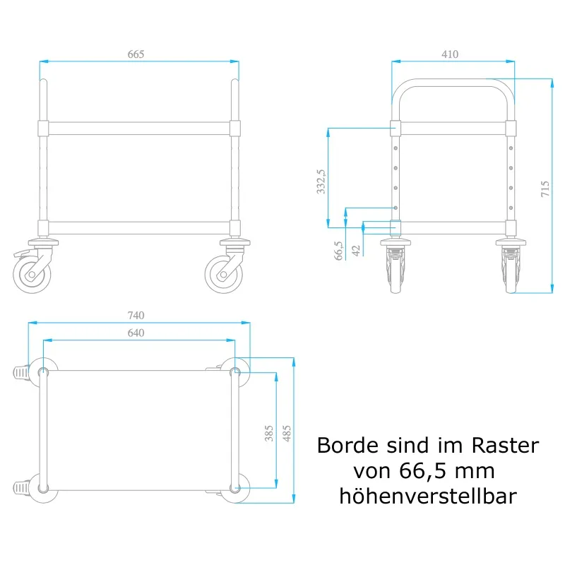 2 höhenverstellbare Borde, Höhenraster 66,5 mm