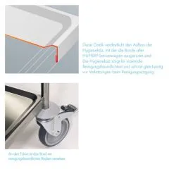 hygienisch abgekantet und nach innen gefalzt, in reinigungsfreundlicher