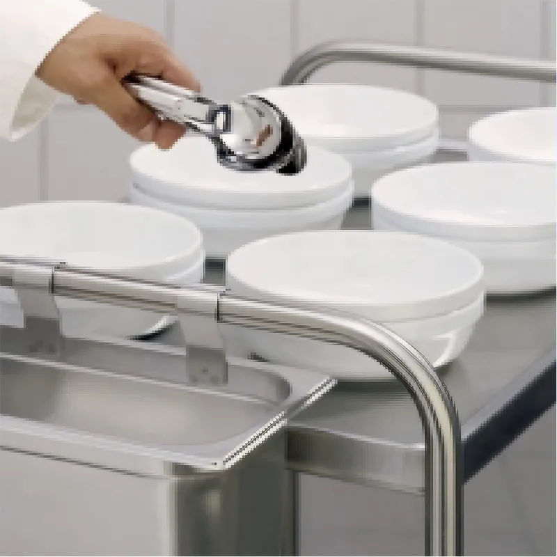 GN-Besteckbehälter 1/3Edelstahl mit Anhängevorrichtungnur für Hupfer Servierwagen undAbräumwagen, mit Rundrohrrahmen.
