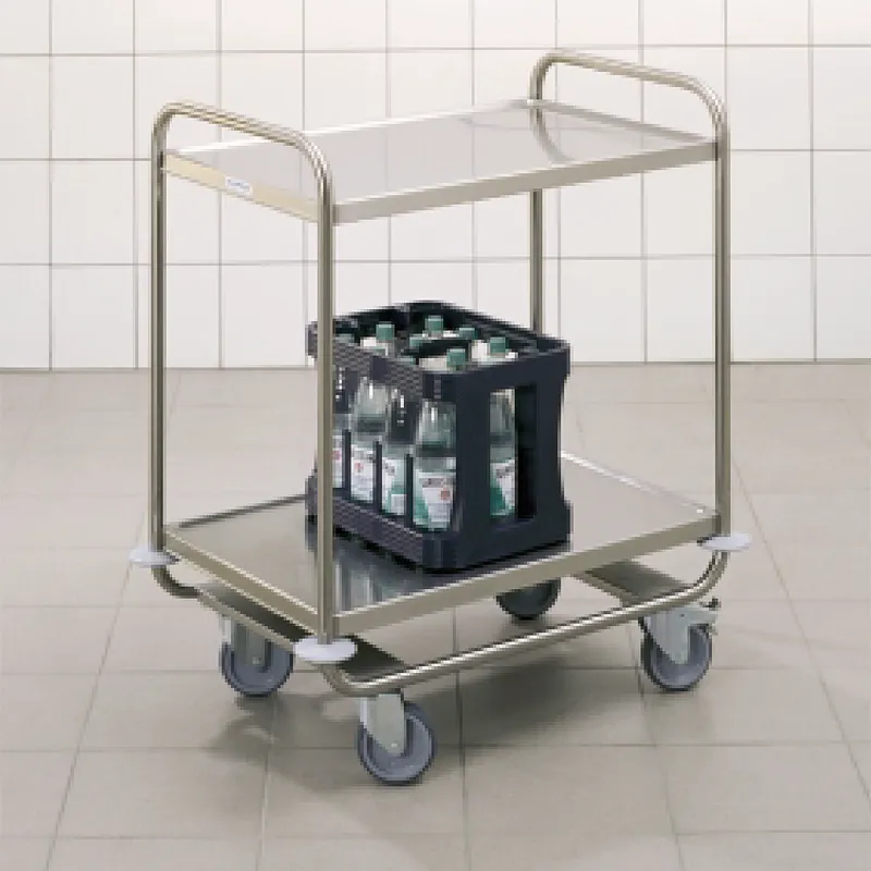 Wagen fahrbar auf 4 Lenkrollen, 2 mit Totalfeststellern, mit mehrfach