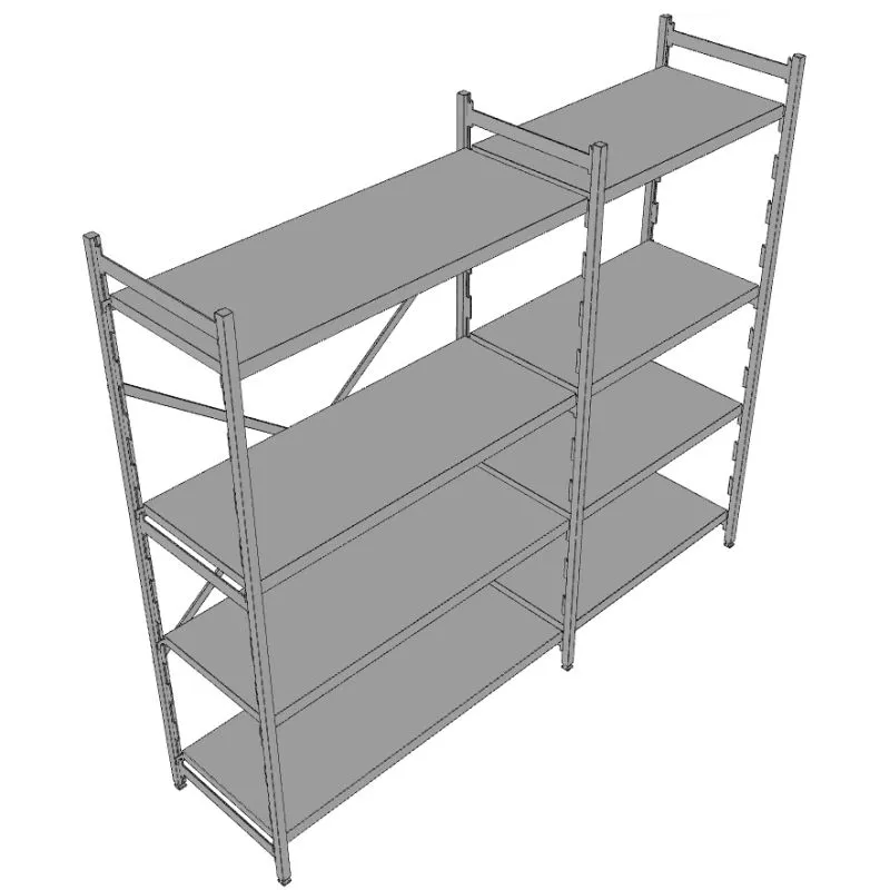 Regalständer aus Spezial-Vierkantrohren 25 x 25 mm, verbunden und stabilisiert durch fest verpresste quer laufende Ständersprossen 40 x 7 mm. Obere Abdeckkappen aus Kunststoff und höhenverstellbare Schraubfüße zum Ausgleich von Bodenunebenheiten bis zu 25 mm als hygienischer Abschluss des Regalständers. Integrierte Auflagelaschen im Abstand 150 mm zum leichten Einhängen der Regalauflagen.