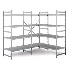 Dauerhafter Einsatz der Regale bei Belastungsgrenzwerten im Temperaturbereich von -30°C bis +60°C möglich. Regalsystem Norm 12 und Norm 20 können kombiniert werden ! Vorgesehen und optimal geeignet für die Verwendung in Kühl- und Tiefkühlraumen, im Medizinbereich, Hygiene- und Sterilabteilungen oder in der Lebensmittelmittelverarbeitung. Ebenso einsetzbar im Lagerbereich, insbesondere bei der Trocken- und Konservenlagerung, Wäschebevorratung oder im Medizin-, Klinik- oder Pharmabereich. Lieferung im zerlegtem Zustand, Montage bauseits.