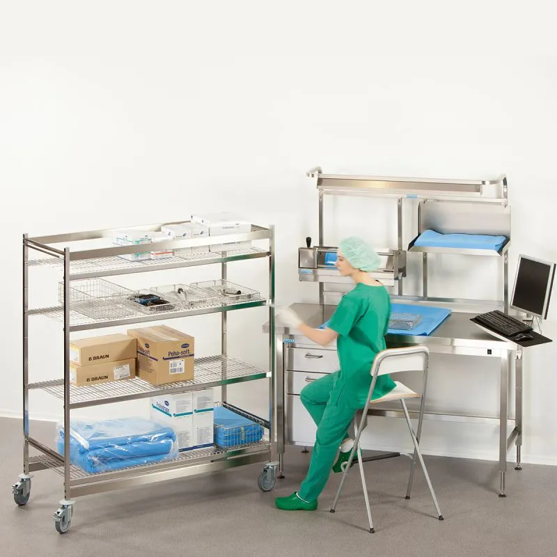 Um den unterschiedlichen Anforderungen gerecht zu werden, kann der Wagen flexibel mit passenden Regalauflagen ausgestattet werden. Dabei stehen verschiedene Regalböden zur Auswahl, darunter Rost, Drahtrost oder geschlossene Ausführungen. Die Materialoptionen umfassen Edelstahl, Aluminium oder Kunststoff, um eine optimale Anpassung an die jeweiligen Bedürfnisse zu ermöglichen.