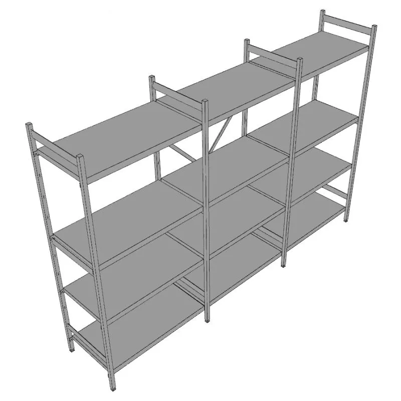 Regalständer aus zwei Vierkantrohren, 25x25 mm, verpresst, mit stabilisierenden querlaufenden Flachprofilen, 50x2 mm. Hygienische Abdichtung mittels höhenverstellbaren Schraubfüßen, Verstellbarkeit 25 mm, oberen Abschlusskappen, aus Kunststoff. Das Höhenraster für die Regalauflagen beträgt 150 mm.