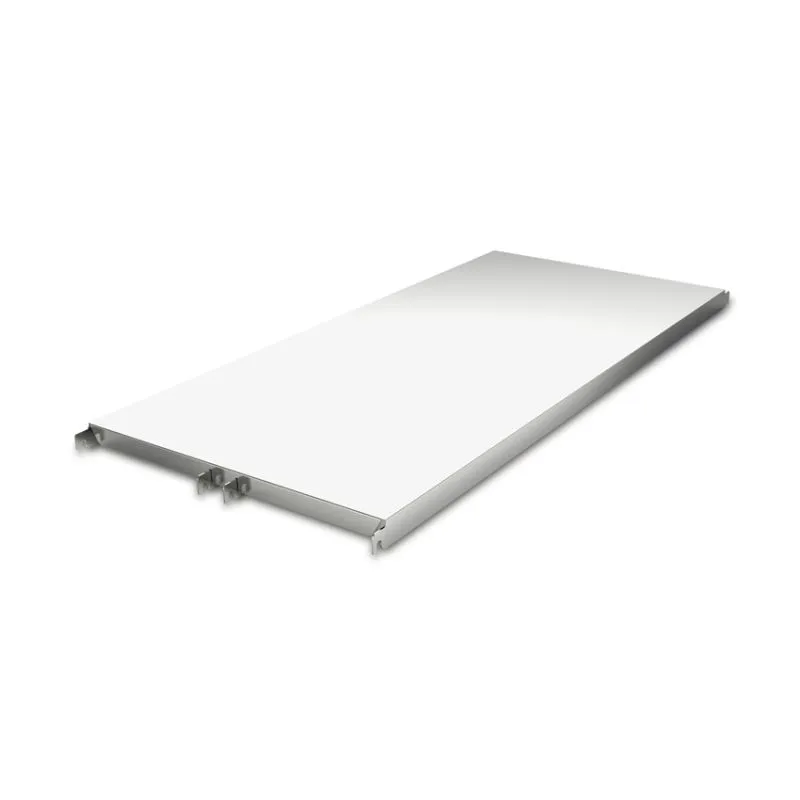 Auflagen aus CNS, Werkstoff 1.4301. Leichte Reinigung, Höhenverstellbarkeit ohne Werkzeug. Geschlossene Auflage Edelstahl aus 1,0 mm Blech, längsseitig 40 mm, stirnseitig 30 mm abgekantet und nach innen gefalzt. Zusätzliche U-Profile als Verstärkungsunterzüge.