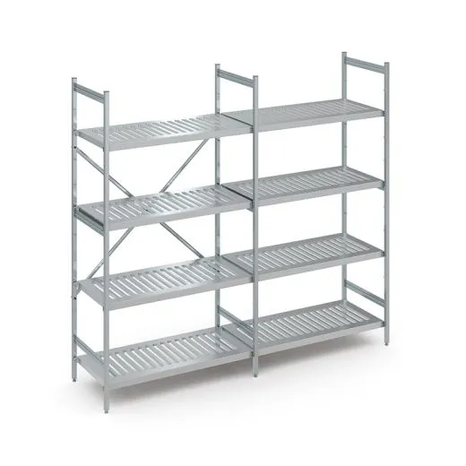 Dank seiner Blechrost Regalauflagen und seines Temperaturbereichs von -40°C bis +60°C ist das Regal äußerst flexibel einsetzbar und passt sich perfekt an die Anforderungen Ihres Betriebs an. Die Möglichkeit des Anbaus und der Erweiterung des Regals bietet Ihnen zusätzliche Flexibilität bei der Gestaltung Ihres Lagers oder Ihrer Kühlräume. Der Eckanbau ist ebenfalls möglich und erleichtert die Ausnutzung von Ecken.