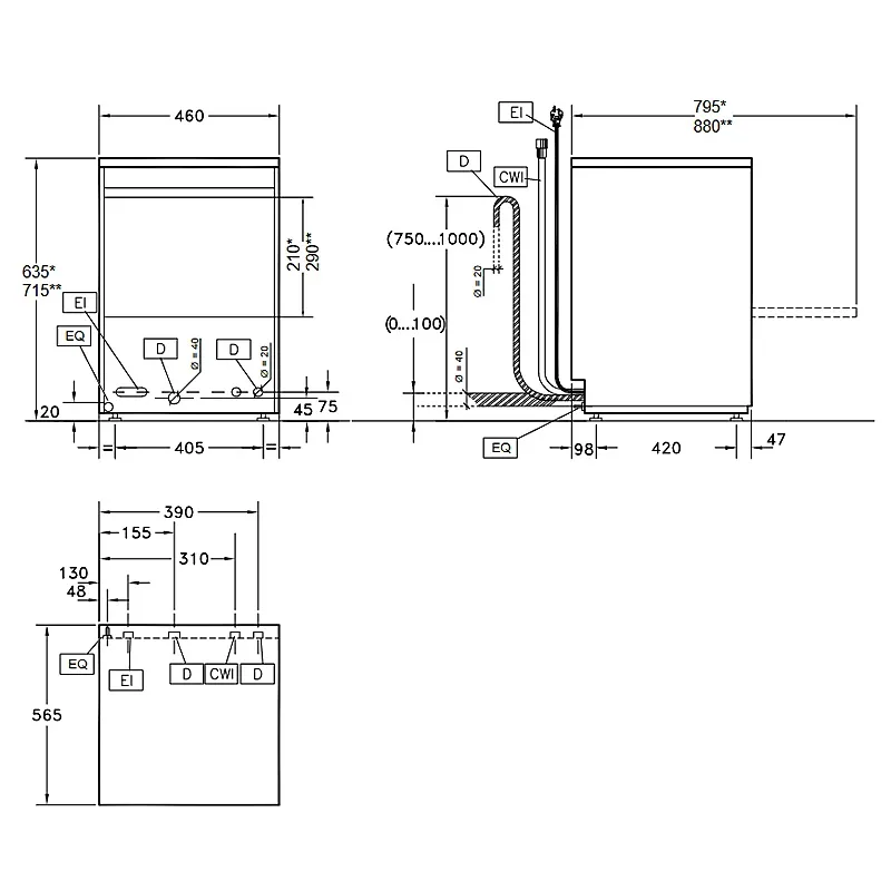 Temperaturbereich Wasserzulauf 10 °C, Kaltwasserzufuhr