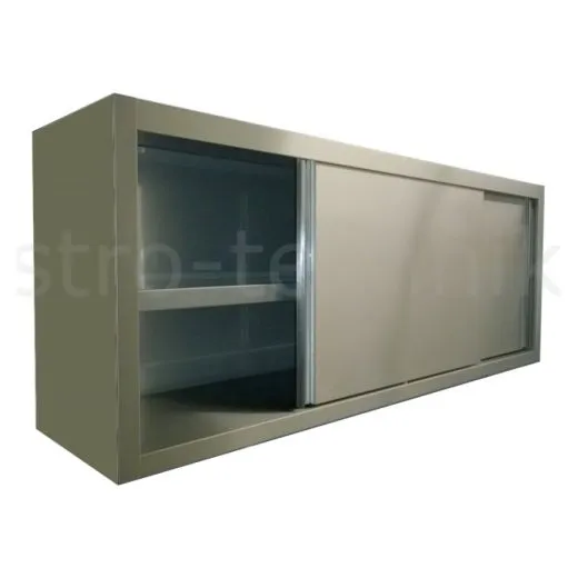 3-seitig geschlossen, frontseitig mit doppelwandigen Schiebtüren sowie abgekanteter, umgeschlagener Griffleiste. Der durchgehende Schrankraum ist mit einem höhenverstellbaren Zwischenboden ausgestattet. Wandbefestigungswinkel für die bauseitige Montage sind inklusive (ohne Schrauben oder Dübel). Die Haltebefestigungswinkel bestehen aus belastbarem und besonders stabilem 2 mm Edelstahlblech.